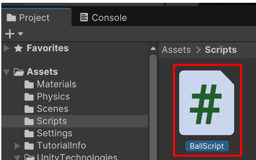 ・「Project」ビューで、「BallScript」をダブルクリックして、「Visual Studio」を開きます。